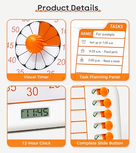 Specification: 3-in-1 Visual ADHD Timer for Kids & Adults with Planning Board, Task Timer, Chore Chart & Visual Schedule Planner, Autism & ADHD Tools with Checklist for Classroom, Homeschool Supplies, Home, School