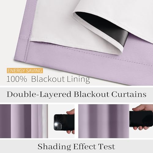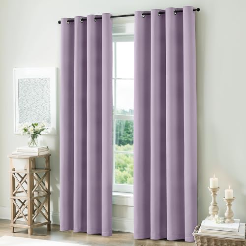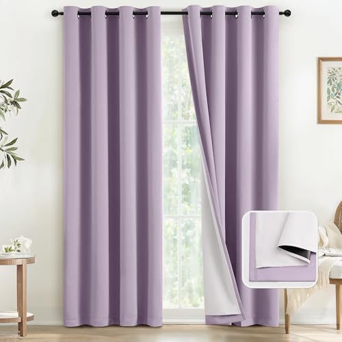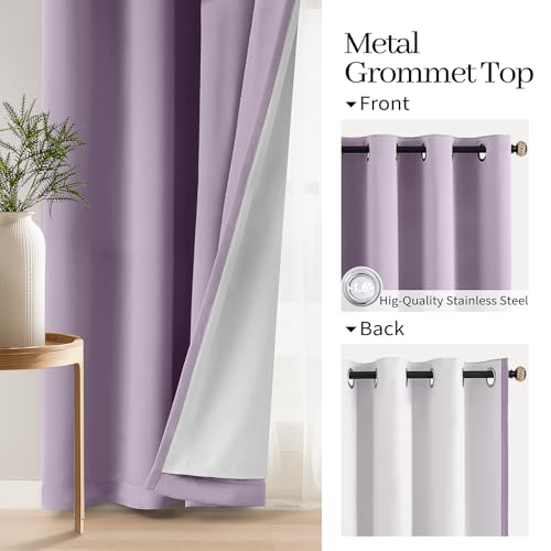 COSVIYA Lilac 100% Blackout Curtains for Bedroom with White Back, 2 Thick Layers Full Room Darkening Grommet Insulated Thermal Window Drapes 52×84 Inch, 2 Panels