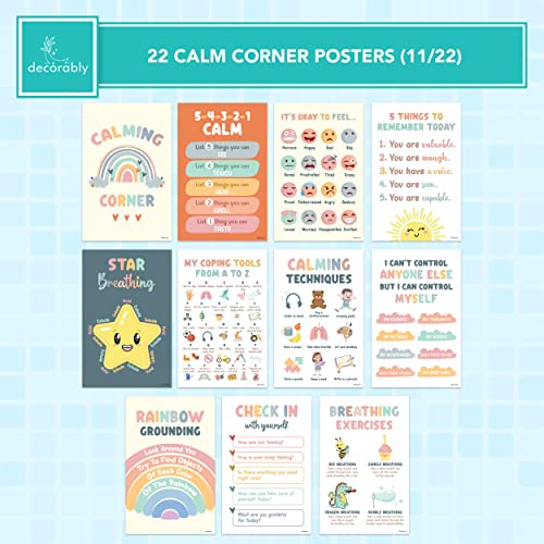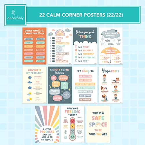 Decorably 22 Calming Corner Posters for Classroom, 11x17in Matte-Laminated Educational Calming Corner Poster – Classrooms, School Hallways, Bulletin Boards, Home Study Room