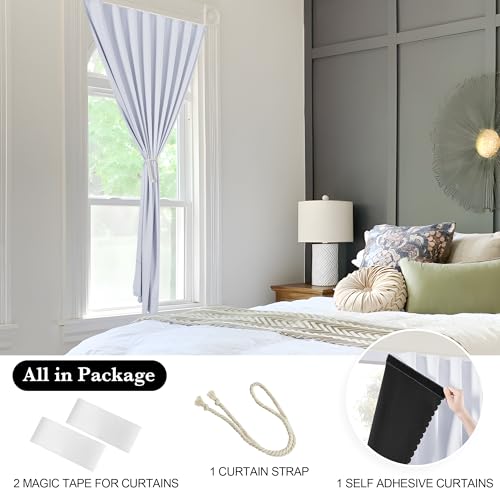 Adjustable Size: Width can be adjusted. For example, the width of the window is a bit longer, it is recommended to buy a bigger size and paste the fabric to create pleats, portable & adjustable design allow you to customize the fit and easily move the curtains as needed.