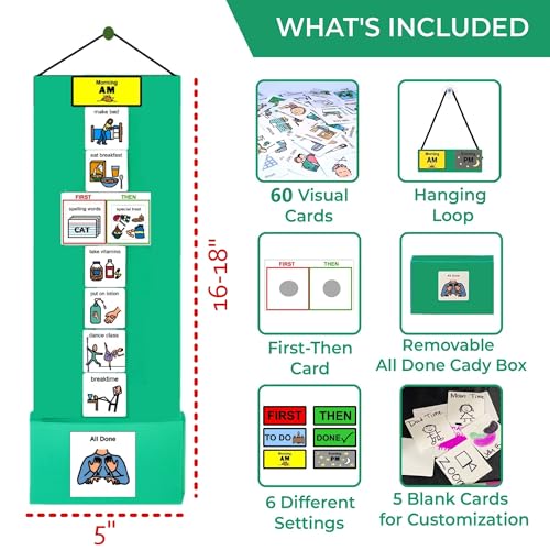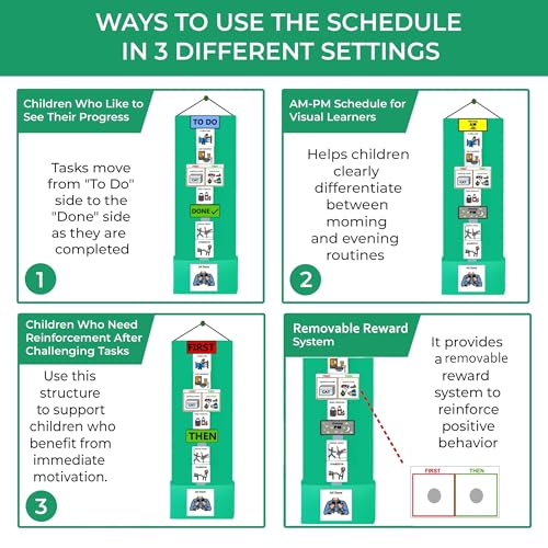 Specification: Visual Schedule for Kids – 133 Durable Plastic Picture Cards with Soft Loop Coins | Daily Routine & Chore Reward Chart for Home, School, Autism, ADHD & Special Needs Behavior Support