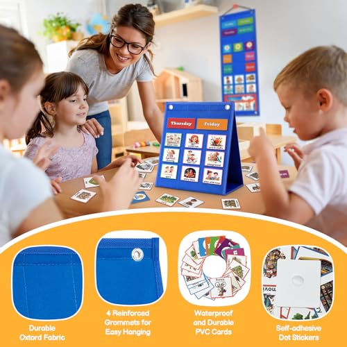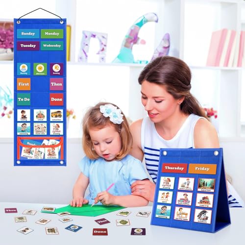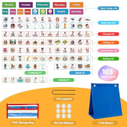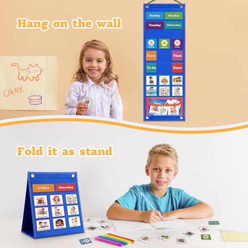 Specification: PITCOTT Visual Schedule for Kids Chore Chart,103 Daily Schedule Board Routine Pocket Chart Cards for Toddlers,Autism Learning Material Tool Wall Planner for Home School with 3 in 1 Cards Gift for Kids