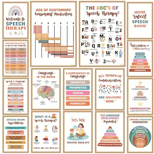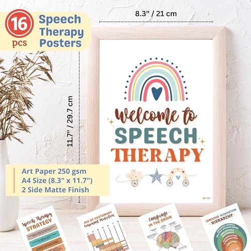 Specification: 16 Speech Therapy Posters for Therapy Room (Size A4 8.3×11.7 inches) Speech Therapy Materials, Speech Therapy Decorations for Classroom, Bulletin Board Speech Therapy, Speech Therapy Decor (No Frame)