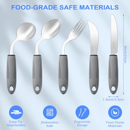 Specification: Adaptive Utensils,Weighted Utensils for Hand Tremors,Utensils for Parkinsons Patients,Elderly,Arthritis,Weak Hand Grip,Tremors&Handicapped.Stainless Steel Knife,Fork and Spoons Set (5pcs Right-Handed)