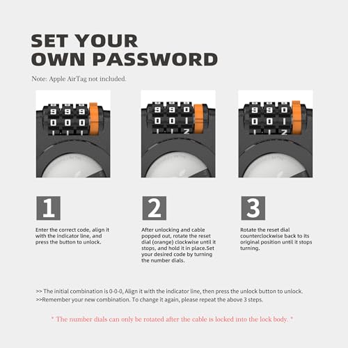【AirTag Combination Lock】Equipped with a 3-digit resettable code, the lock prevents unauthorized removal of your AirTag. No keys required—set your own combination for quick access.