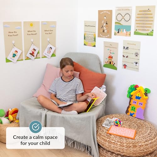 Specification: Calm Down Corner | Perfect for Classrooms | Sensory Calming Corner with Items for Kids | Education Calming Corner Kit with Posters, Solutions Wall, Sensory Toys, Fidget Tools | Special Education