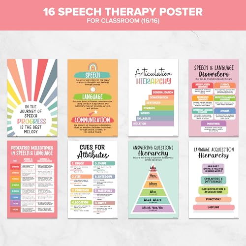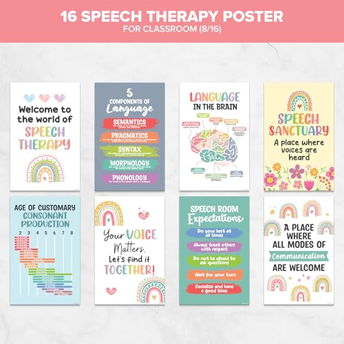 Decorably 16 Speech Therapy Posters for Classroom, 11x17in Matte-Laminated Educational Speech Therapy Poster Set – Classrooms, School Hallways, Bulletin Boards, Home Study Room