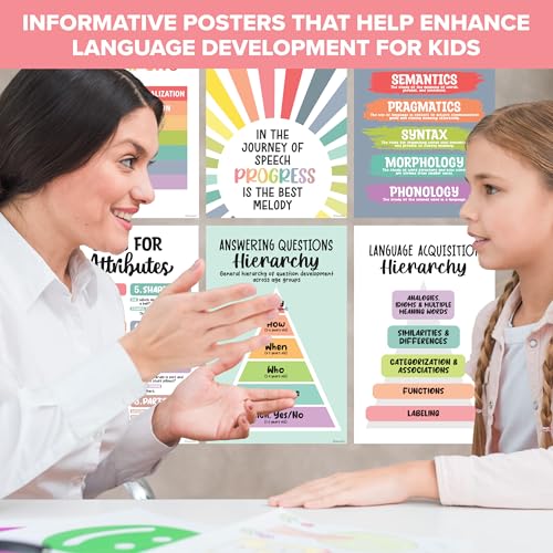 LANGUAGE DEVELOPMENT – Educate students with 16 colorful speech therapy posters for therapy room featuring various components of speech & language. It can help kids improve their language abilities, including speaking, listening, reading, & writing.