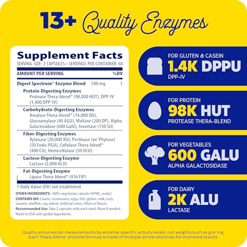 Specification: Enzymedica Digest Spectrum, Advanced Digestive Enzymes for Women and Men, Supports Digestion and Multiple Food Intolerances, Fast-Acting Formula for Gas and Bloating Relief, 120 Capsules FFP