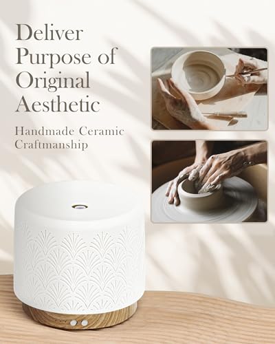 Essential Oil Diffuser, 280ml Aromatherapy Diffuser Ultrasonic Cool Mist Diffuser with Auto Shut-Off,Ceramic Diffuser for Home Office SPA Yoga