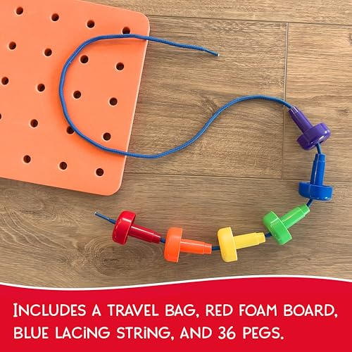 Specification: LMC Products Foam Peg Board Toy – 36 Pegs, Foam Board, Lacing String, Storage Bag – Occupational Therapy Toys – Fine Motor Skills Toys for Toddlers and Kids (Orange)
