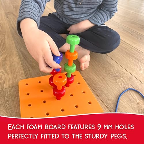 Quality Design – Our 8 x 8-inch foam board features 25 precisely sized holes, ensuring each peg fits snugly without being too tight or too loose. This thoughtful design enhances your child’s playing experience while supporting fine motor skill development.