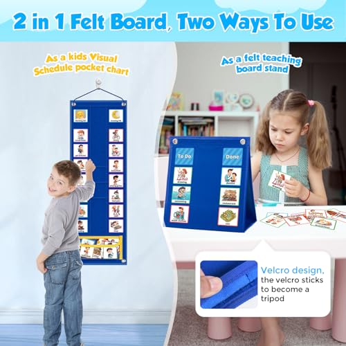 Specification: KIKIGOAL Kids Visual Schedule Calendar Chart, 2 in 1 Autism Daily Chore Routine Chart with 96 Cards Autism Learning Materials Bedtime Routine for Toddlers Home School