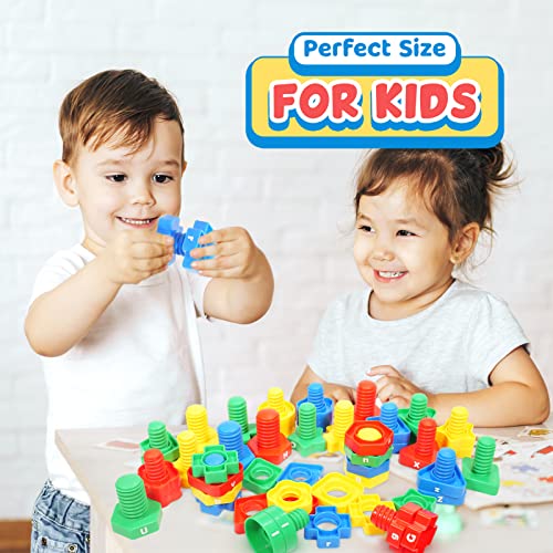 Letters Learning Matching Game | Fine Motor Skills Toy Set for Toddlers | 26 Alphabet Learning Toys with 52 pcs Nuts and Bolts Sorting & Stacking Toys, ABC learning Educational Montessori Toy for Kids
