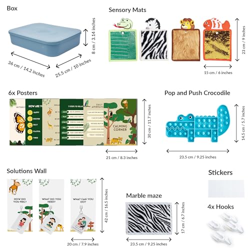 Specification: ODOXIA Calm Down Corner | Classroom and Special Education Must Haves | Therapy Calming Corner Items for Kids | Safari Themed Calming Corner Kit with Plush, Posters, Solutions Wall