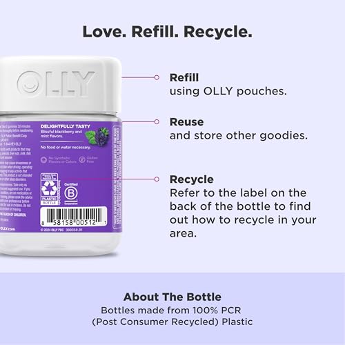 OLLY Sleep gummies for adults deliver a unique blend of active ingredients that work together to calm your mind and promote restful sleep so you wake up feeling refreshed. These Melatonin gummies, with L-Theanine and Botanicals like Chamomile and Lemon Balm, work with your body to help you fall asleep and stay asleep.* Naturally flavored with Blackberry and a hint of mint, Sleep gummy vitamins help you drift off. They’re naturally delicious, scientifically formulated and gluten-free. Good health is at the center of everything we do. That’s why we’ve made it our mission to make nutrition easy to understand. We do it by crafting products that are as effective as they are delicious—because we know when something feels good, you’re more likely to do it.* *These statements have not been evaluated by the Food and Drug Administration. This product is not intended to diagnose, treat, cure or prevent any disease. For occasional sleeplessness. CAUTION: Melatonin may cause drowsiness or sleepiness; do not take while driving, operating machinery, or engaging in any activity that requires alertness.