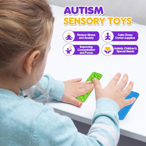 Textured Fidgets Toys for Kids Adults: These small fidget strips have suction cups on the bottom that hold them firmly to smooth surfaces, making them great for classroom and office stress relief. They can also be sucked together in pairs, so that they can be rubbed repeatedly on the fingers of the hand to rreplace autistic children’s unconscious repetitive behaviors
