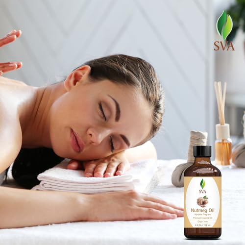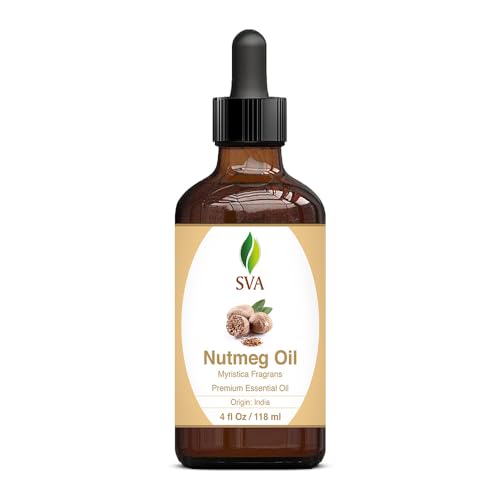 Specification: SVA Nutmeg Essential Oil – 4 Fl Oz – 100% Natural Nutmeg Oil – for Diffuser, Hair Care, Face, Skin Care, Aromatherapy, Scalp and Body Massage, Soap and Candle Making – with Dropper
