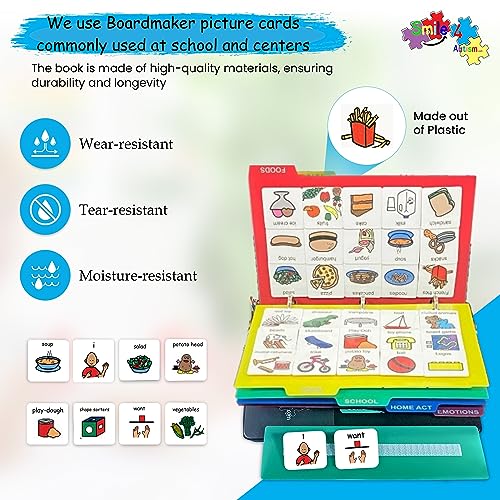📚Evidence-Based: The communication photo cards aim to equip children on the spectrum with a quick, self-initiating, and functional communication skill. The system starts with the exchange of simple icons and progresses rapidly to building sentence structures, such as “I want apple,” “I see park,” and “I hear train.”
