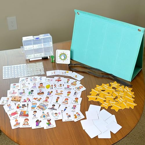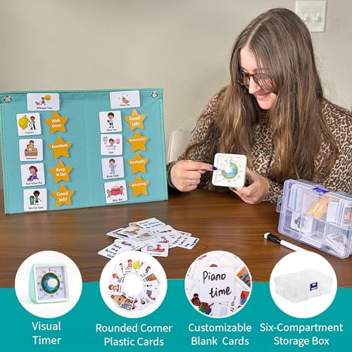 USER-FRIENDLY DESIGN: Our high-quality reward chart is easily customizable to fit your child’s routine, using durable plastic cards with both images, words, and blank customizable cards for simple understanding. Each small step is easy to follow, and with the integrated timer, managing tasks becomes a breeze!