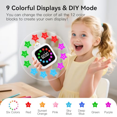 Specification: Yunbaoit Digital Visual Timer for Kids, Rechargeable 99-Minute Silent Countdown Timer with 19 Ringtones, 9 Optional DIY Color Star Display, Time Management Tool with Pause Function (Rainbow)